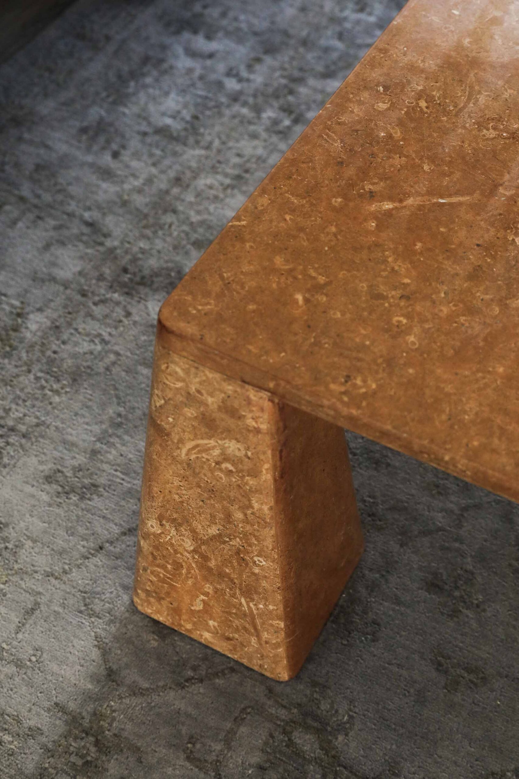 edges, holds its ground with effortless grace. Supported by four rounded truncated pyramid-like marble legs, each swelling from top