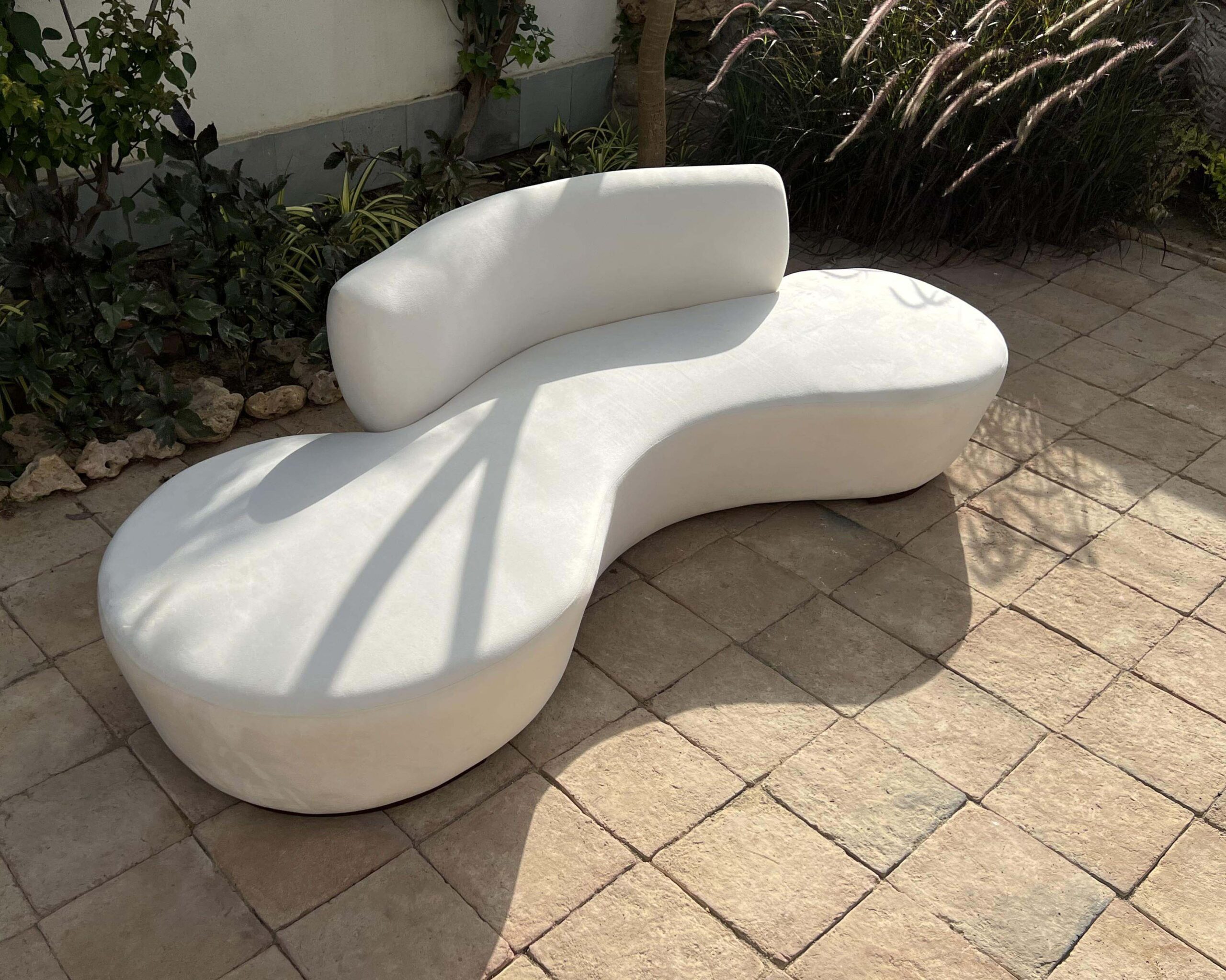 Inspired by Vladimir Kagan’s iconic Serpentine sofa, “Curve Your Enthusiasm” is crafted to foster togetherness. This versatile piece is